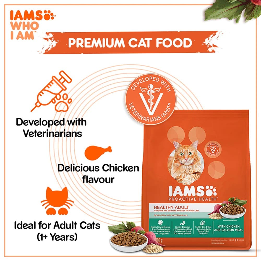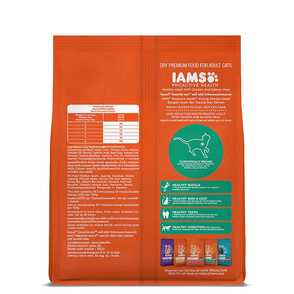 Introducing IAMS Proactive Healthy Adult (1+ Years) Chicken & Salmon Meal Dry Premium Cat Food, the perfect choice for discerning cat owners who prioritize their feline companion’s health and well-being. Crafted with the expertise of IAMS, a trusted name in pet nutrition, this premium cat food provides a complete and balanced diet to support your cat’s overall vitality.