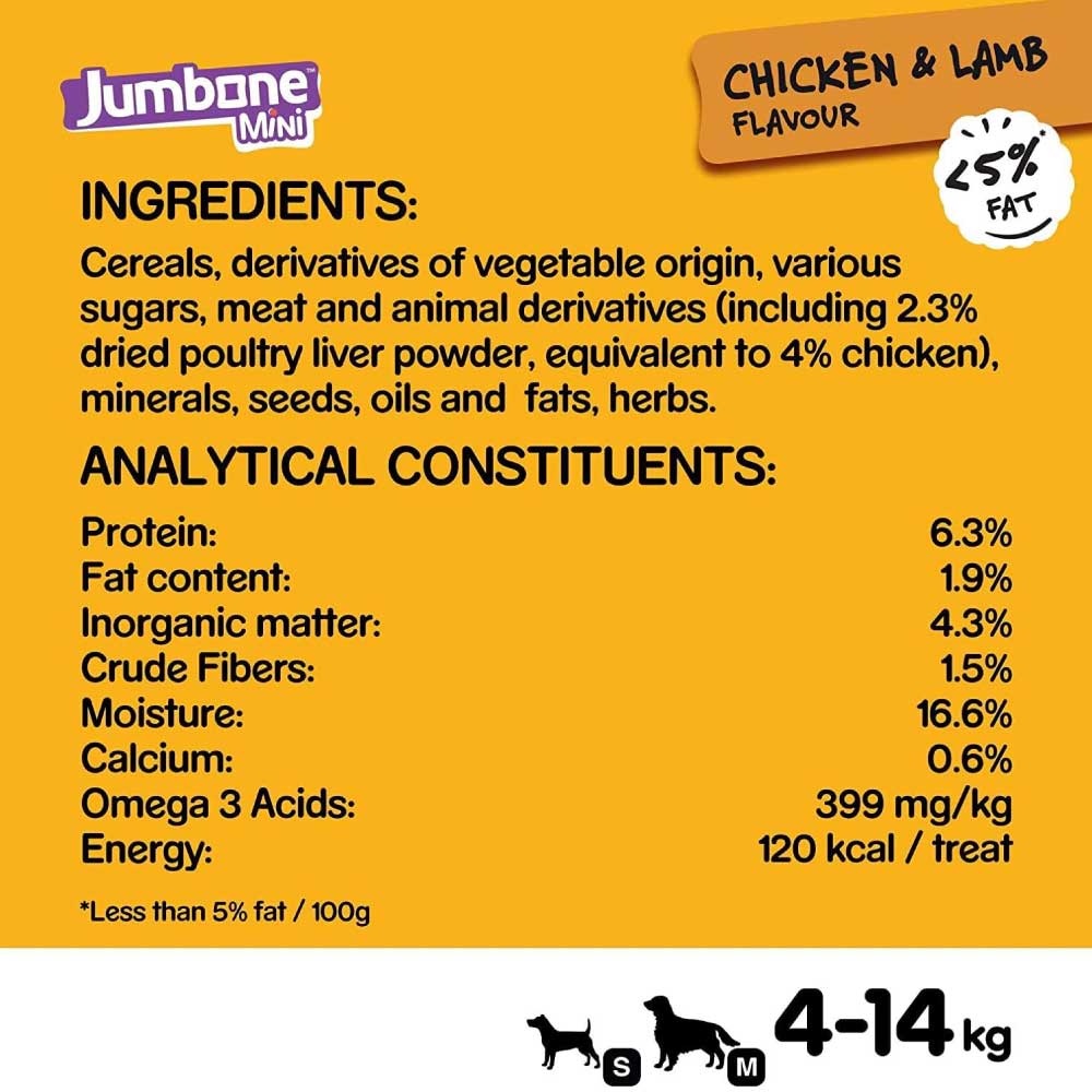 Pedigree Jumbone is complementary pet food for adult dogs with low fat and Omega 3 to help keep them fit for life. It also contains Vitamin E to help support natural defenses and minerals including calcium to help keep your furry friend’s bones strong.