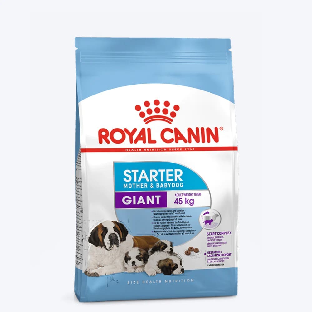 ROYAL CANIN Giant Starter Mother & Babydog contains all the nutrients your dog needs to support them during pregnancy and throughout the lactation period. Containing a high protein, energy, and mineral content, this food caters to the dietary requirements of both the mother and her pups. The ‘Start Complex’ feature is the result of committed scientific research by ROYAL CANIN. It’s an exclusive combination of nutritional elements which are present in the mother’s milk. Reinforced with special nutrients, Start Complex actively contributes to supporting your puppies’ digestive health and natural defences while they’re still in the early stages of development. ROYAL CANIN Starter Mother & Babydog is also available as an ultra soft moose, offering a high level of palatability with the same nutritional support and digestibility.