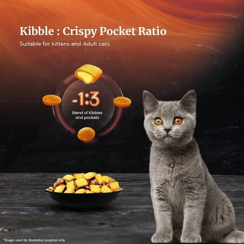 - Made with real chicken, the pockets are filled with a smooth and creamy center along with crunchy kibble that your cat will love.